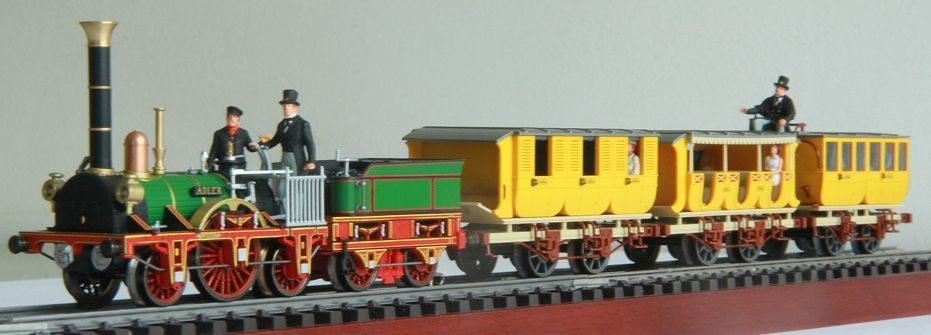 En el año 2000 Märklin presentó, como modelo Insider con código 26350 un tren con la Adler en construcción metálica y 3 coches cubiertos. Este modelo (foto de arriba), basado en el prototipo reproducido en 1935, estaba bastante mas detallado que el de Trix, con ruedas de radios torneados (las principales tractoras sin pestaña) y focos como en el prototipo, decorativas filigranas en los laterales y bielas interiores operativas. El pequeño motor de campana, controlado por un descodificador Delta, iba instalado en el ténder, con tracción a sus dos ejes. Como se indicaba el su presentación en el anuario del 2000, "Este tren ha sido fabricado por motivos estéticos y técnicos a la escala especial SM3 H0 (1:80) de acuerdo con la norma NEM 001". Incluía las figuras de Mr. Wilson y su fogonero, y un juego más de Preiser, aunque sus atavíos no se correspondian con la época. El conjunto se presentaba en una caja de madera junto con un folleto explicativo.