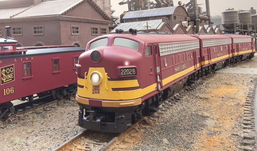 Foto © Märklin.La segunda novedad de 2014 también era una serie limitada con el mismo molde de 1961, en este caso una locomotora A-B-A número 2202B de la SOO line que se acompañaba de un "caboose" bastante mas detallado que sus tractoras, aunque estas estén bastante mejoradas en tampografía y algún que otro detalle. Las 3 unidades están unidas permanentemente y unos visibles cables de colores afean la composición. Aún con ganchos HK 7. Embalada en caja con diseño de los 60. Un completo repaso al modelo en este vídeo.