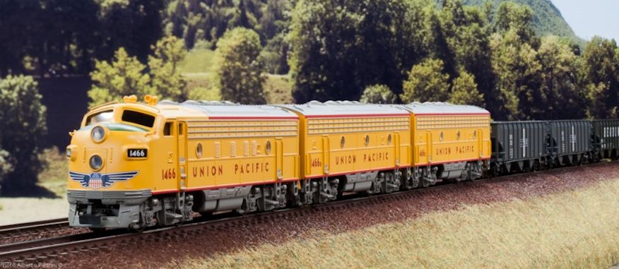 Märklinfan Club Italia.En 2011 se presentó esta locomotora de 3 unidades A-B-B de la Union Pacific, número 1466, librea amarilla. Doble motorización con descodificador mfx con sonidos. Se acompaña de un "caboosee".