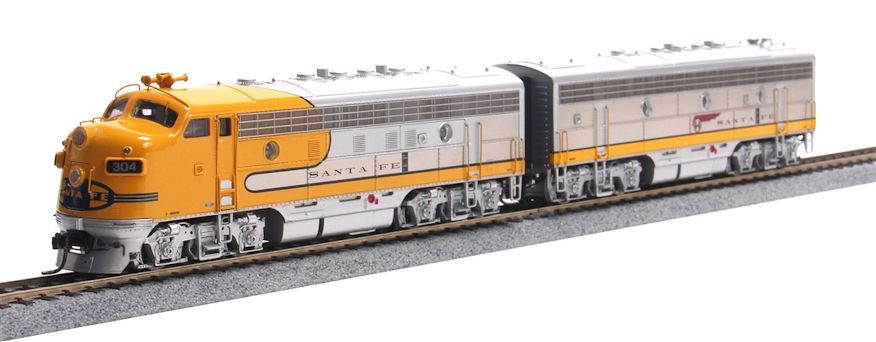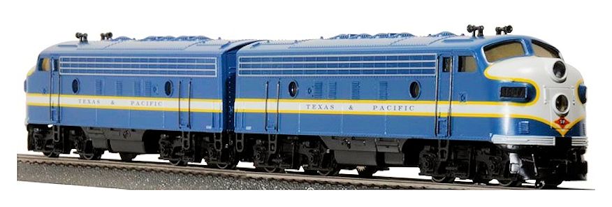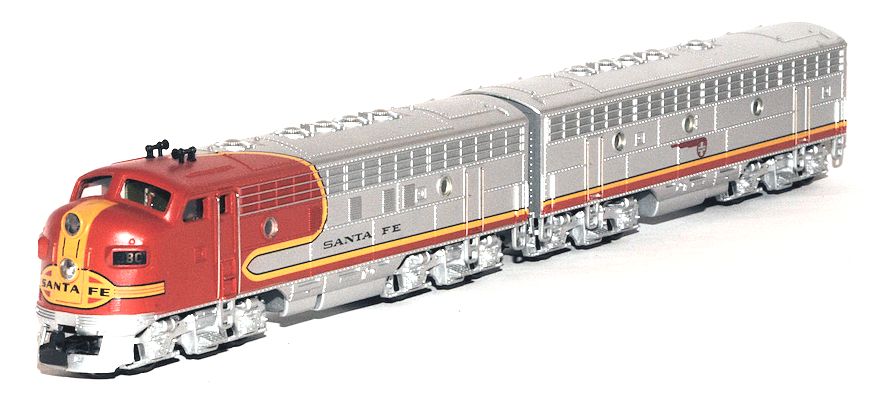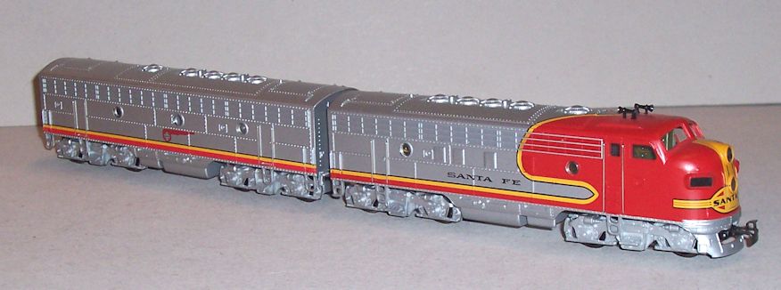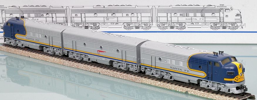 Vendedor eBay dansibar.Locomotora A-B-A de Atkinson Topeka & Santa Fe, con librea azul y plata. Números 330/333, un sólo motor DCM, enganches permanentes. MHI.