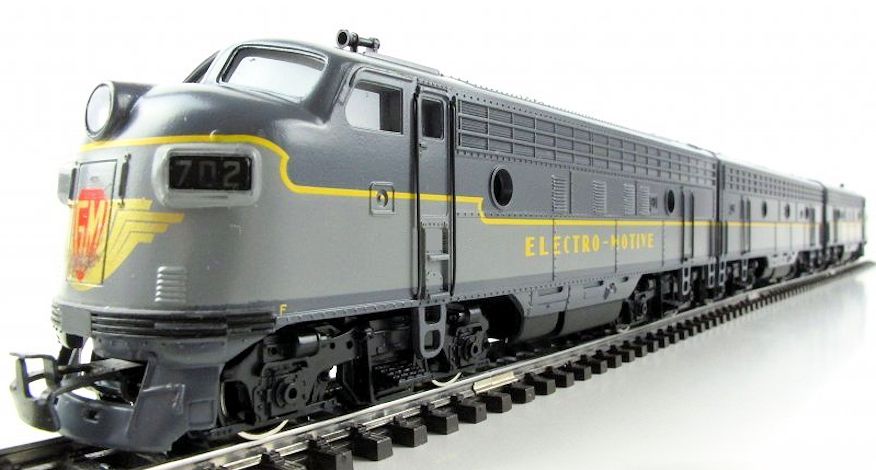 Vendedor eBay bimmelbahn24.La locomotora A-B-A de demostración EMD "Electro-Motive" apareció en una serie limitada en 1990. Números 701/702, Librea gris, Sin foco inferior, un sólo motor DCM, enganches permanentes.