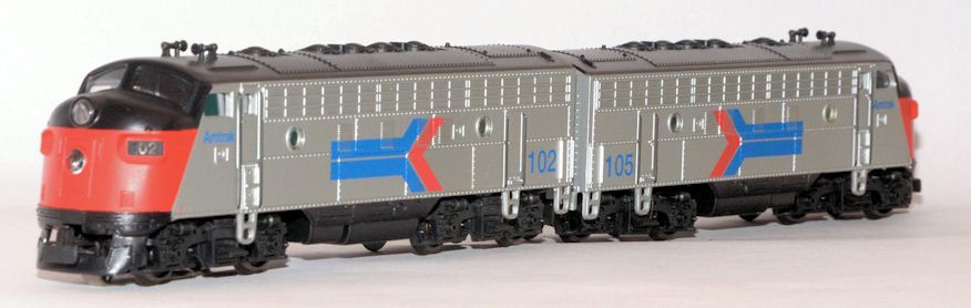 nixwiehem.Locomotora A-A (33621) A-B-A (37621) de Amtrak librea rojo plata y azul, números 102/105 (102/105/106 37621). Doble motorización. Serie única de 1997.
