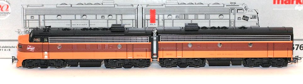 Las F7 de Märklin era un modelo acorde con los acabados de la época, similares a los del "Schienenbus": La carrocería metálica descansaba sobre un ligero chasis de chapa que soportaba los dos bogies, uno de los cuales equipaba el ruidoso motor de colector plano de 3 polos SFCM (mas tarde reemplazado por un DCM de 3 o 5 polos). Los cristales traslúcidos no dejaban ver el inexistente interior de la cabina. En principio la decoración frontal estaba adherida en forma de calcomanía, no pintada (a partir de 1992 fue ya tampografiada). La iluminación mediante una única bombilla se dividía entre los dos focos delanteros y los expositores de los números. Para su época los detalles y los bogies resultaban correctos, pero para los estándares actuales aparecen toscos y simples. El primero modelo presentaba un tope en el centro del frontal que, aunque aparece en el prototipo, desapareció en siguientes versiones.