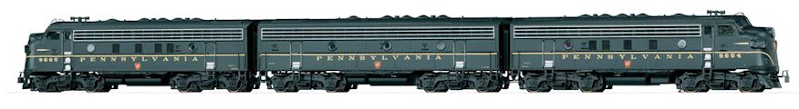 Reynaulds.comLocomotora A-B-A de Pennsylvania Railroad, librea negra, números 9654/9665. doble motorización, mfx con sonidos, enganches permanentes. Año 2010.