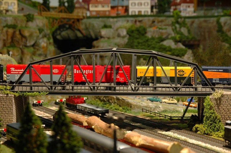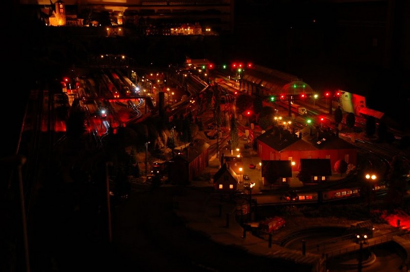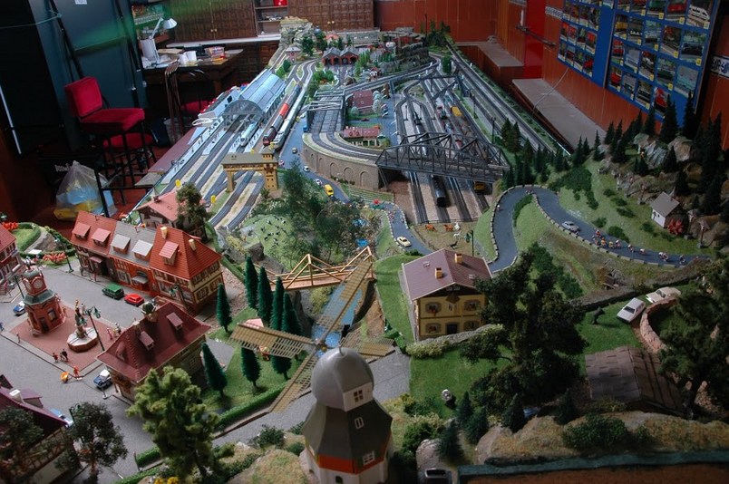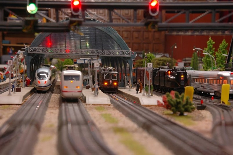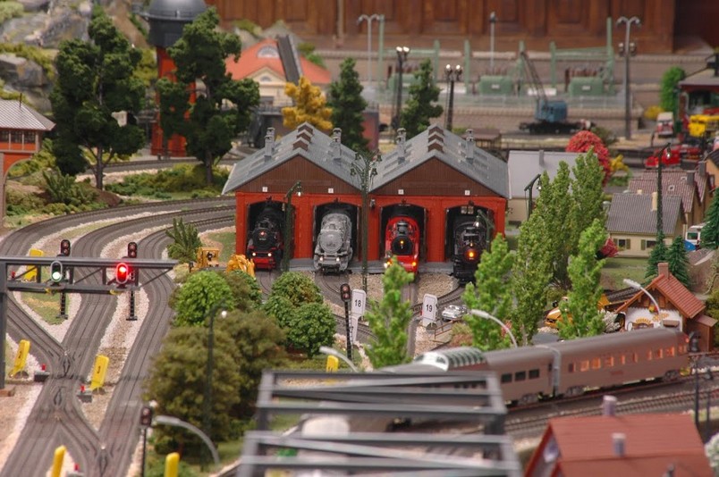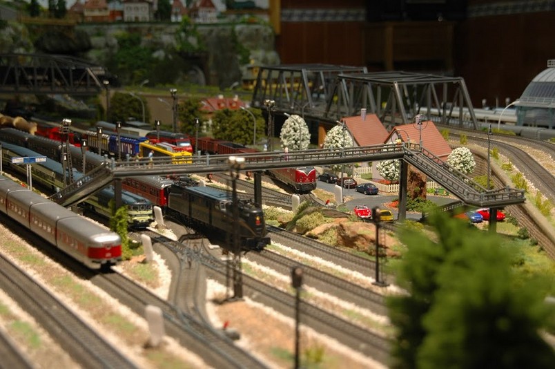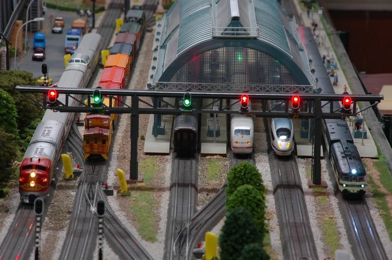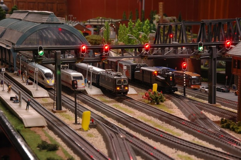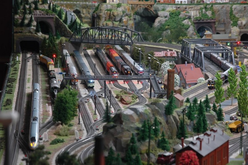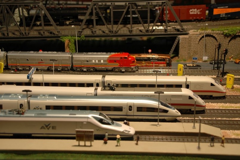 Basada en la vía C de Marklin, el trazado tiene un total de 102 m de vía, 37 desvíos, y la base son cuatro anillos independientes con curvas de radios R5, R5, R4 y R3 respectivamente. Los dos anillos interiores tienen un sistema de puentes para pasar por encima de la zona de aparcamientos. Las pendientes son muy suaves. Las locomotoras más grandes y complejas como las Big Boy pueden circular por todo el trazado sin restricción. Cuatro trenes pueden estar circulando de una forma totalmente desatendida y ocho con una mínima vigilancia.