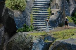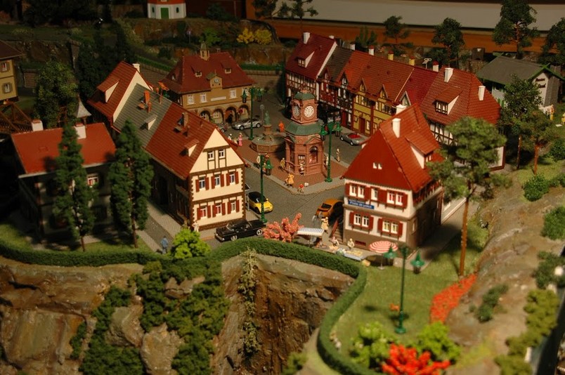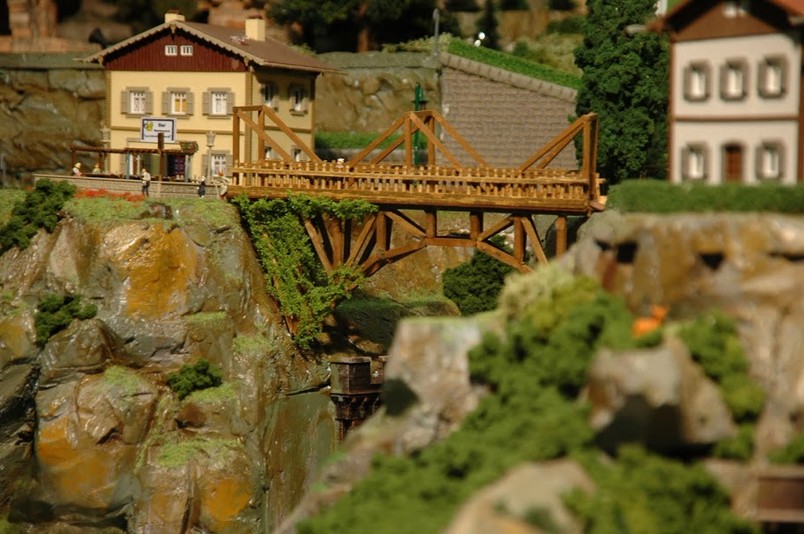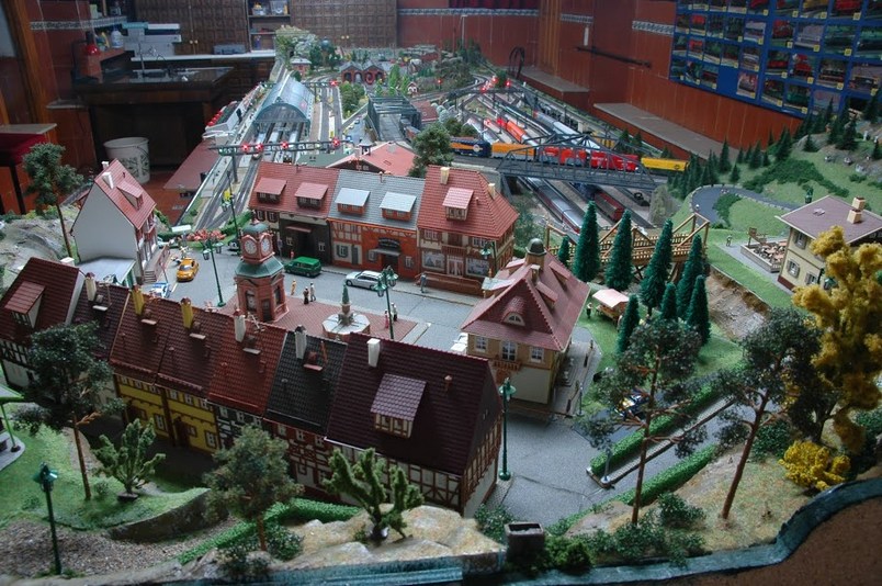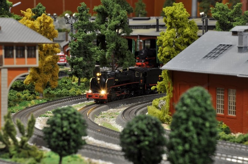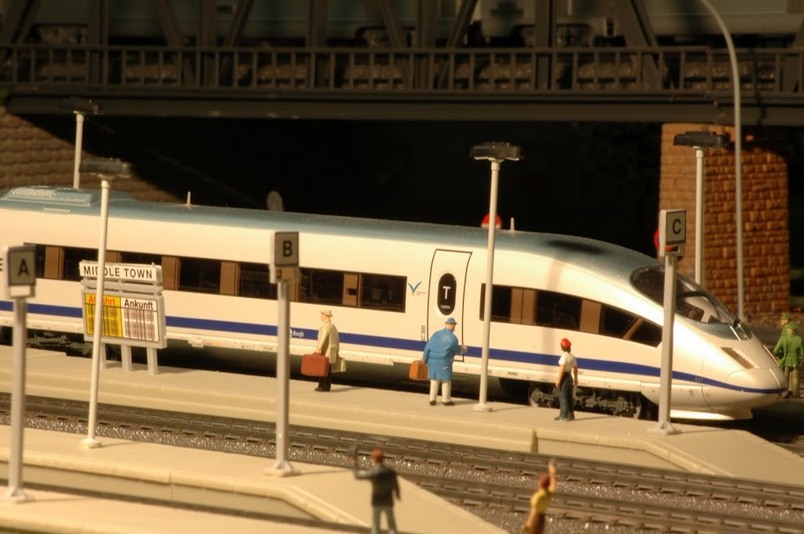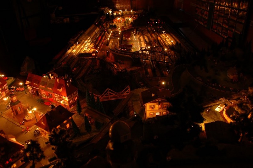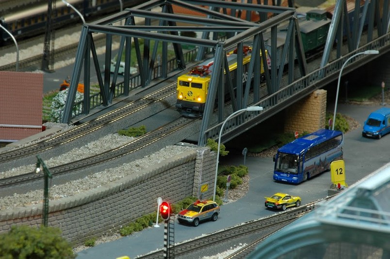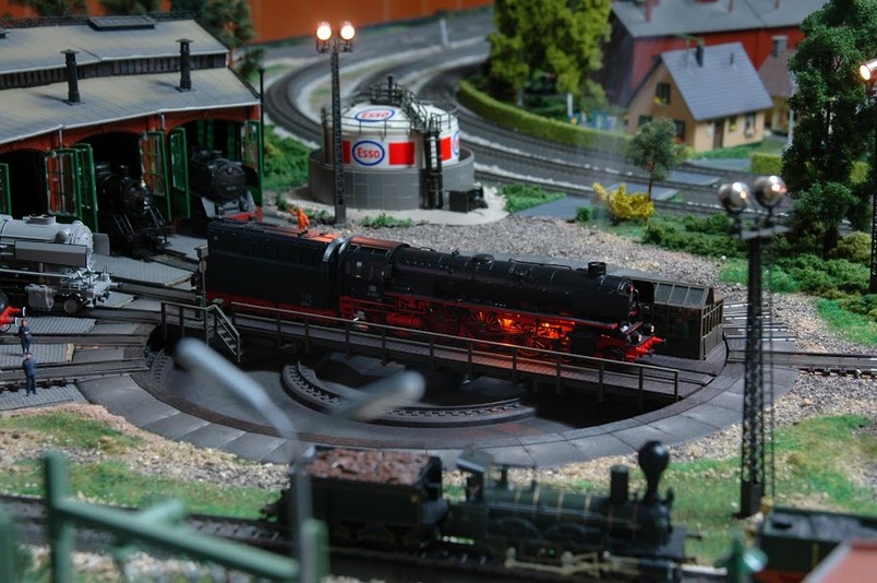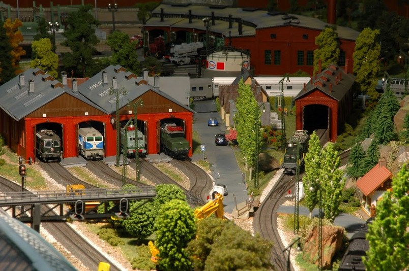Basada en la vía C de Marklin, el trazado tiene un total de 102 m de vía, 37 desvíos, y la base son cuatro anillos independientes con curvas de radios R5, R5, R4 y R3 respectivamente. Los dos anillos interiores tienen un sistema de puentes para pasar por encima de la zona de aparcamientos. Las pendientes son muy suaves. Las locomotoras más grandes y complejas como las Big Boy pueden circular por todo el trazado sin restricción. Cuatro trenes pueden estar circulando de una forma totalmente desatendida y ocho con una mínima vigilancia.