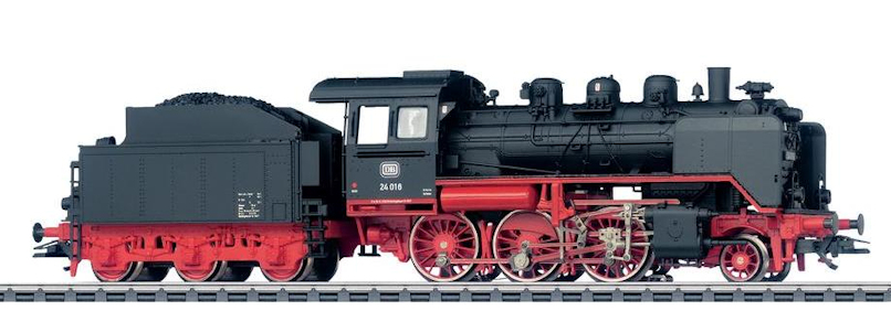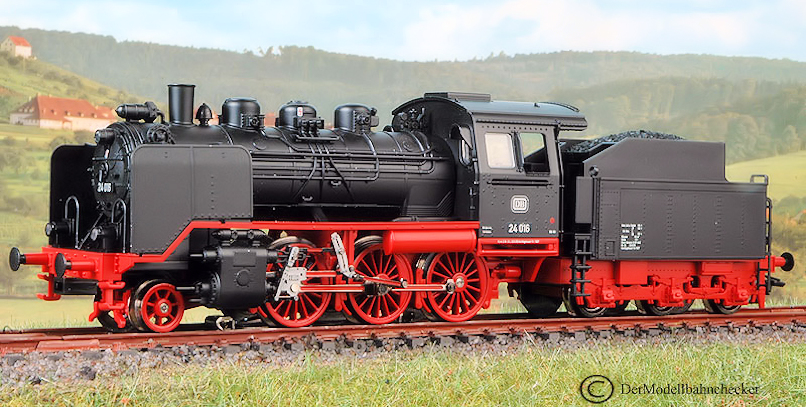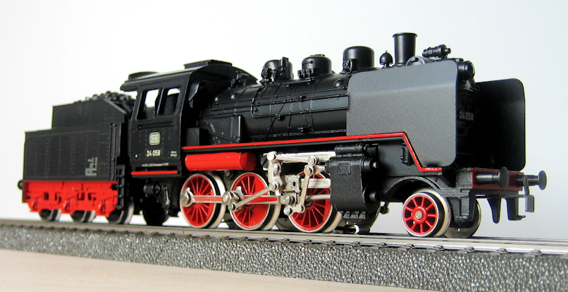 Con este aspecto se ha presentado la nueva BR 24, 36240, en el catálogo de novedades 2008. Ejecución detallada, construcción metálica (caldera), contacto para fumígeno, luces por LED, en una locomotora enmarcada en la serie "Hobby", lo que supone un atractivo precio de 129 € (unos 100 € en tiendas). En principio una digna sucesora de la ya veterana y líder de ventas de código 3003. Puede haber quien opine que la nueva versión de una máquina tan emblemática se merecía haber sido adscrita a un nivel de construcción superior, como la también novedad de 2008 BR 64, pero sin duda este es un modelo que no defraudará a sus propietarios.